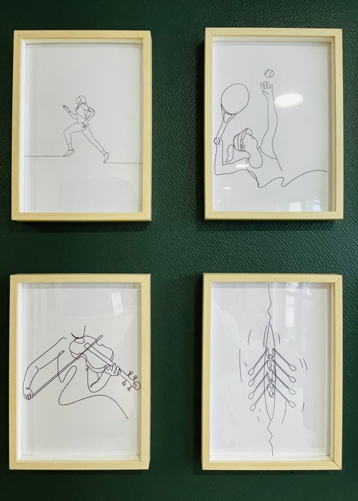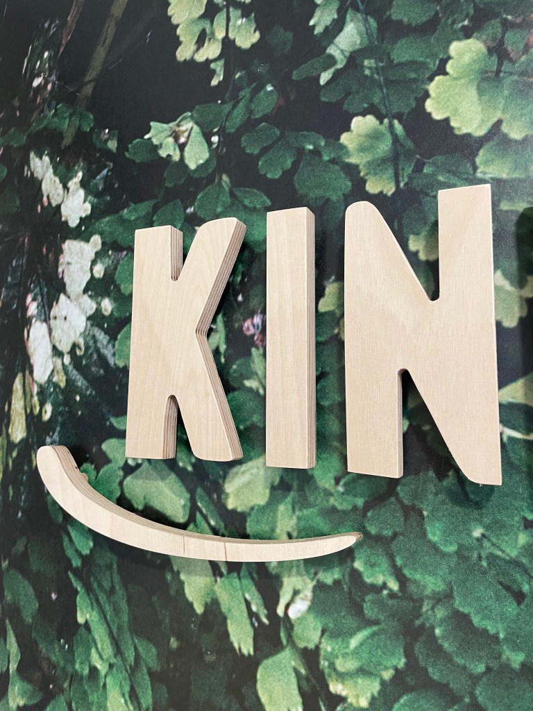 Pour la banque d’accueil, nous avons conçu un mobilier sur mesure en contreplaqué de bouleau multiplis, posé sur un mur habillé d’un panoramique végétal. Ce bois clair et structuré apporte à la fois chaleur et raffinement. Pour contraster avec les lignes très rectilignes de l’espace existant, nous avons imaginé une banque d’accueil courbe, avec des portes rainurées verticalement, accentuant ainsi la sensation de hauteur.